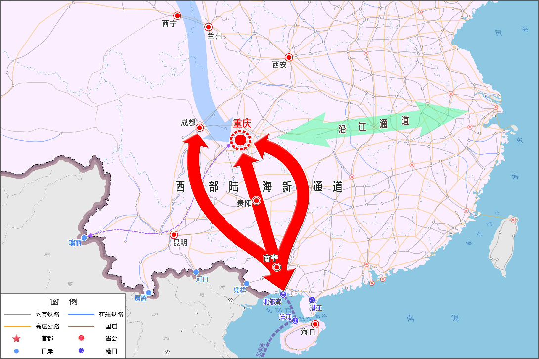 重要樞紐。著力打造國際性綜合交通樞紐,充分發(fā)揮重慶位于“一帶一路”和長江經(jīng)濟(jì)帶交匯點(diǎn)的區(qū)位優(yōu)勢,建設(shè)通道物流和運(yùn)營組織中心;發(fā)揮成都國家重要商貿(mào)物流中心作用,增強(qiáng)對通道發(fā)展的引領(lǐng)帶動(dòng)作用。建設(shè)廣西北部灣國際門戶港,發(fā)揮海南洋浦的區(qū)域國際集裝箱樞紐港作用,提升通道出??诠δ堋?/span>
