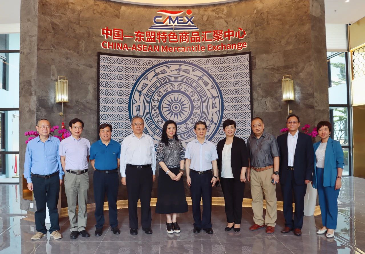2023年5月5日,全國(guó)政協(xié)常委,上海市社會(huì)主義學(xué)院院長(zhǎng)、廣西自貿(mào)試驗(yàn)區(qū)顧委會(huì)主任委員周漢民率隊(duì)到中國(guó)—東盟特色商品匯聚中心(以下簡(jiǎn)稱“匯聚中心”)調(diào)研并舉行座談交流。作為廣西自貿(mào)試驗(yàn)區(qū)的重點(diǎn)項(xiàng)目,匯聚中心很榮幸能受到顧委會(huì)的指導(dǎo)。中國(guó)—東盟特色商品匯聚中心董事長(zhǎng)趙海燕熱情接待了調(diào)研組一行。