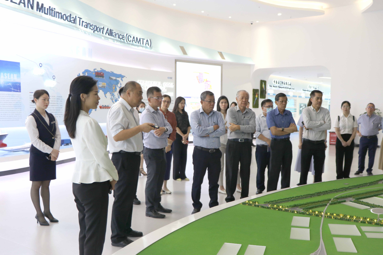 在中新物流園展示中心,考察組深入了解園區(qū)的產(chǎn)業(yè)布局及整體建設(shè)情況。由新加坡太平船務(wù)投資建設(shè)的中新物流園是廣西參與“一帶一路”及推進(jìn)中新互聯(lián)互通、西部陸海新通道建設(shè)、海洋經(jīng)濟(jì)發(fā)展重大項(xiàng)目之一,充分利用在國內(nèi)國際、特別是新加坡太平船務(wù)集團(tuán)在集裝箱海運(yùn)及物流方面等資源,帶動更多貨物經(jīng)由北部灣進(jìn)出,拉近了中國與東盟的經(jīng)貿(mào)合作距離,吸引更多的海內(nèi)外企業(yè)來中國發(fā)展。