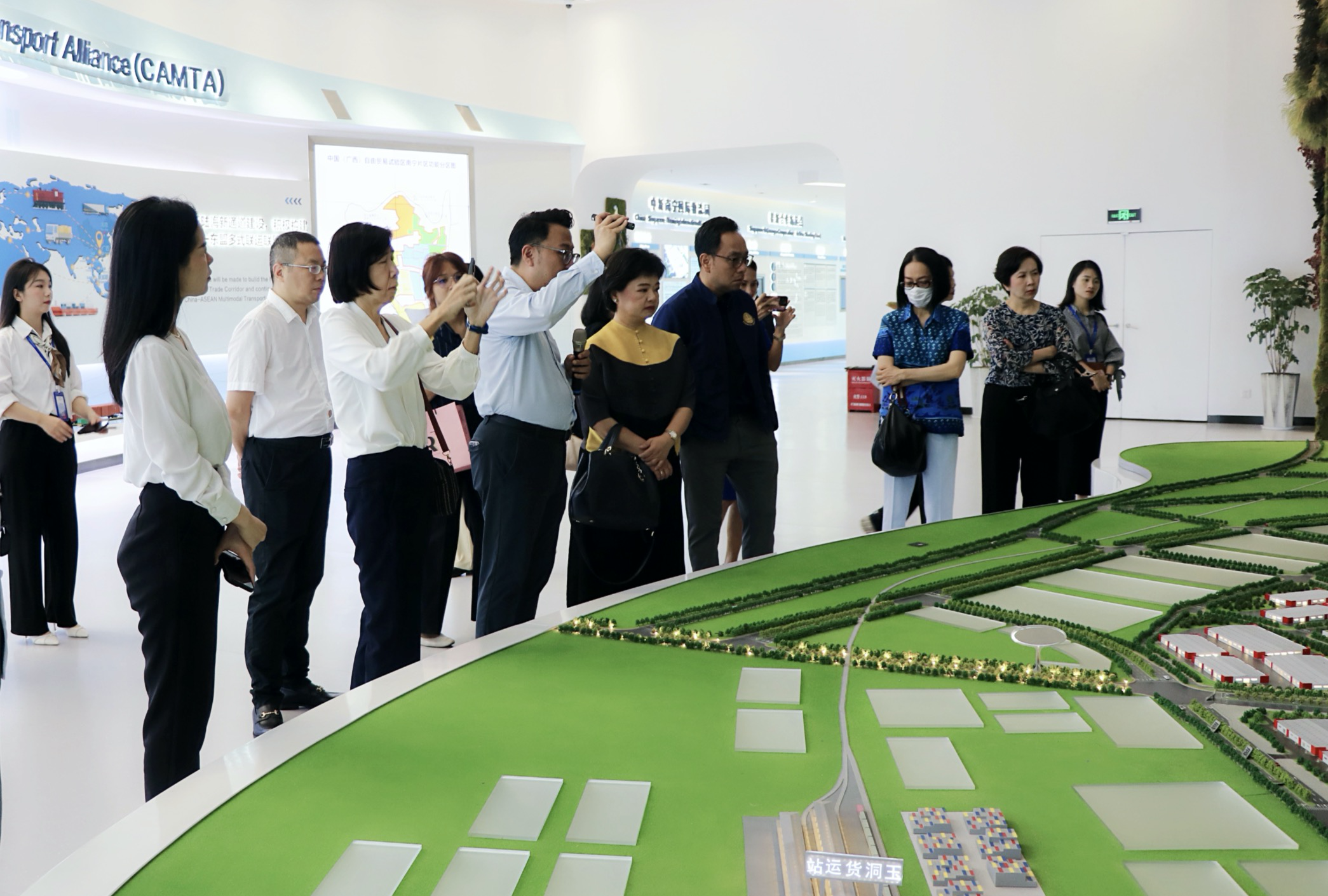 2023年6月30日,泰國商業(yè)部巡視組組長(副司級)素南塔.剛婉古吉女士一行到中新南寧國際物流園(以下簡稱“中新物流園”)、中國—東盟特色商品匯聚中心(以下簡稱“匯聚中心”)考察,就進一步提升中泰兩國在經(jīng)貿(mào)領(lǐng)域的合作與交流展開探討。廣西新中產(chǎn)業(yè)投資有限公司副總經(jīng)理商紅熱情接待了巡視組一行。