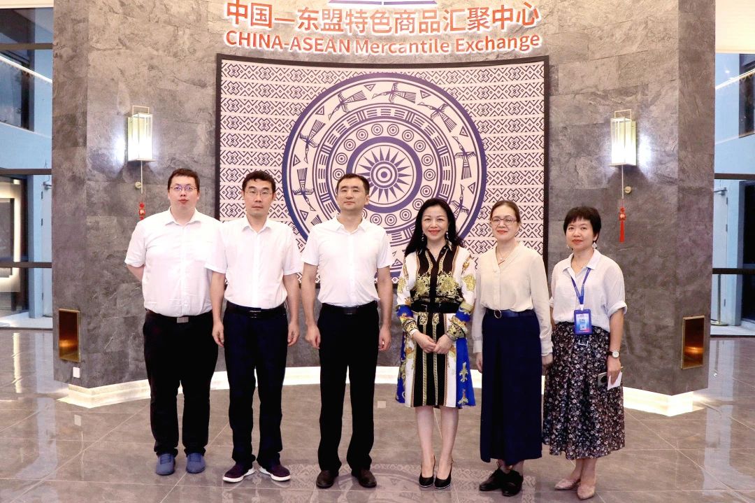 2023年7月20日下午,自治區(qū)人民政府副秘書長,自治區(qū)大數(shù)據(jù)發(fā)展局黨組書記、局長趙志剛一行到中國—東盟特色商品匯聚中心(以下簡稱“匯聚中心”)考察調(diào)研并進行座談交流。中國—東盟特色商品匯聚中心董事長趙海燕熱情接待了調(diào)研組一行。