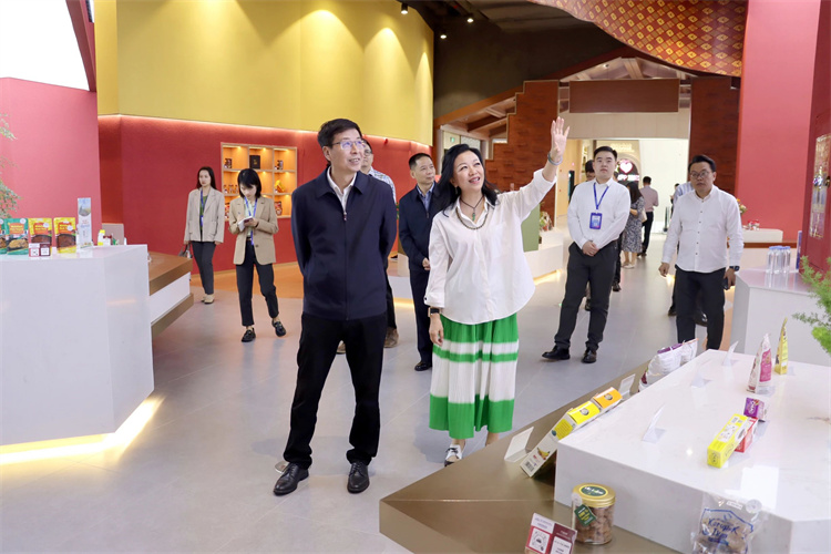 王雷書記可以說是匯聚中心的“老朋友”了。在他任職中國—東盟博覽會秘書處秘書長期間,匯聚中心自概念提出再到落地建設(shè),他是其中的見證者之一。在參觀匯聚中心多個主題展館的過程中,趙海燕董事長詳細介紹了項目如何通過線上數(shù)字化平臺+線下展館沉浸式商貿(mào)體驗相結(jié)合的方式,以“物”引“流”、以“物”促“流”,幫助商家實現(xiàn)更好的發(fā)展。
