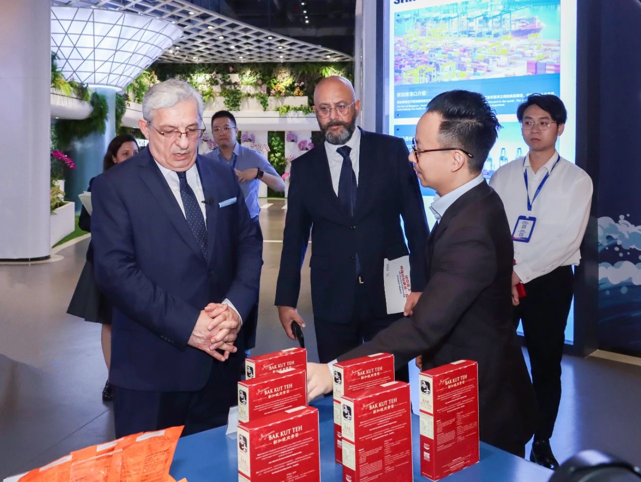 來(lái)到匯聚眾多清真商品的世界清真商貿(mào)中心時(shí),考察團(tuán)表現(xiàn)出了濃厚的興趣。穆薩大使興奮地表示能在廣西看到土耳其的清真商品讓他倍感驚喜,并就清真商品的來(lái)源、認(rèn)證、入駐、銷售等問(wèn)題進(jìn)行了交流。穆薩大使認(rèn)為清真市場(chǎng)發(fā)展前景十分廣闊,在廣西打造世界清真商貿(mào)中心既可以助力中國(guó)清真產(chǎn)品打入國(guó)際市場(chǎng),也可以幫助世界清真產(chǎn)品進(jìn)入中國(guó)大市場(chǎng)。他表示土耳其有著優(yōu)越的地理位置和友好的投資環(huán)境,可便捷對(duì)接廣闊的歐洲、中東和非洲市場(chǎng)。同時(shí),他也非常看好中國(guó)和東盟巨大市場(chǎng),希冀借助“一帶一路”建設(shè)的大潮,通過(guò)廣西增進(jìn)土耳其與東盟各國(guó)的溝通交流,促進(jìn)經(jīng)貿(mào)合作發(fā)展?;貒?guó)后他也將積極調(diào)動(dòng)各種資源,組織土耳其更多優(yōu)質(zhì)企業(yè)和特色商品入駐匯聚中心,讓越來(lái)越多的當(dāng)?shù)靥厣梦铩⑶逭娈a(chǎn)品通過(guò)平臺(tái)走進(jìn)廣西,走進(jìn)中國(guó)乃至更廣闊的國(guó)際大市場(chǎng),也非常歡迎中國(guó)企業(yè)到土耳其投資興業(yè),合作共贏。