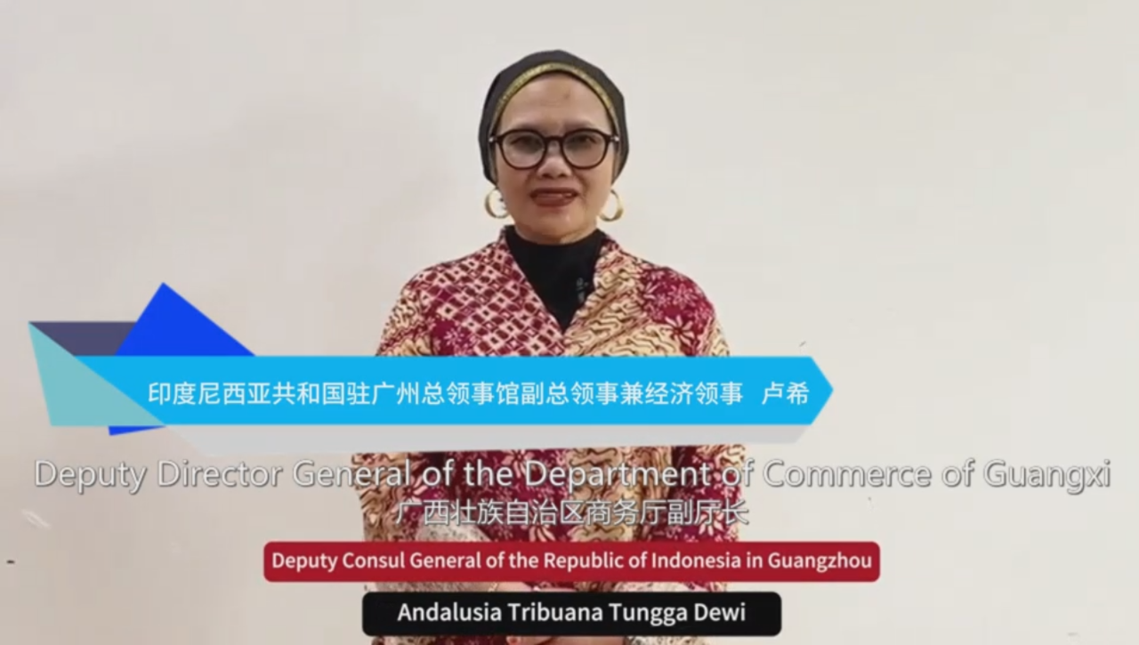 ▲盧希副總領事在視頻致辭中表示,包括廣西在內的華南地區(qū)在促進印尼與中國建立更緊密、更深層次關系方面發(fā)揮著關鍵作用。清真市場為印尼與廣西之間的合作,包括在東盟框架內的合作提供了巨大的機會。今年是印尼和中國建交75周年,中印尼兩國政府致力于進一步加強伙伴關系。為此,她希望這次活動能夠取得更加具體的成果,造福兩國人民。