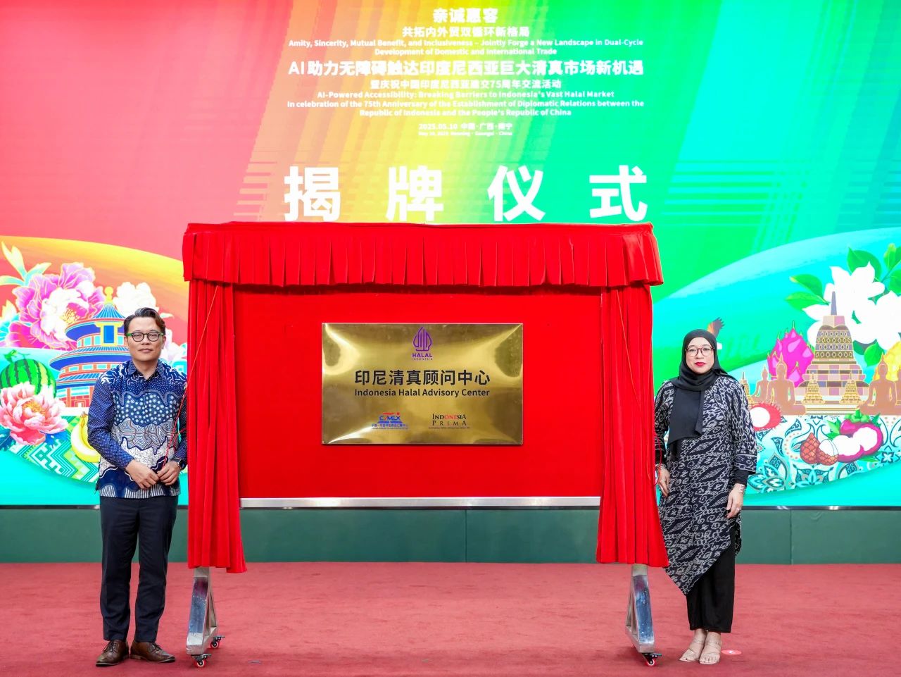 邕江潮涌,梭羅風至——五月商機正當時,2025年5月10日,“親誠惠容·共拓內外貿(mào)雙循環(huán)新格局——AI助力無障礙觸達印度尼西亞巨大清真市場新機遇暨慶祝中國印度尼西亞建交75周年交流活動”在中國—東盟特色商品匯聚中心(簡稱“匯聚中心”)隆重舉行。此次活動由廣西壯族自治區(qū)商務廳、中國—東盟特色商品匯聚中心主辦,印度尼西亞共和國駐廣州總領事館、中國—東盟博覽會秘書處、廣西壯族自治區(qū)歸國華僑聯(lián)合會協(xié)辦。