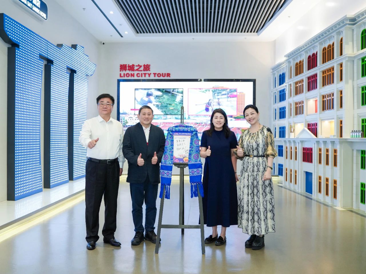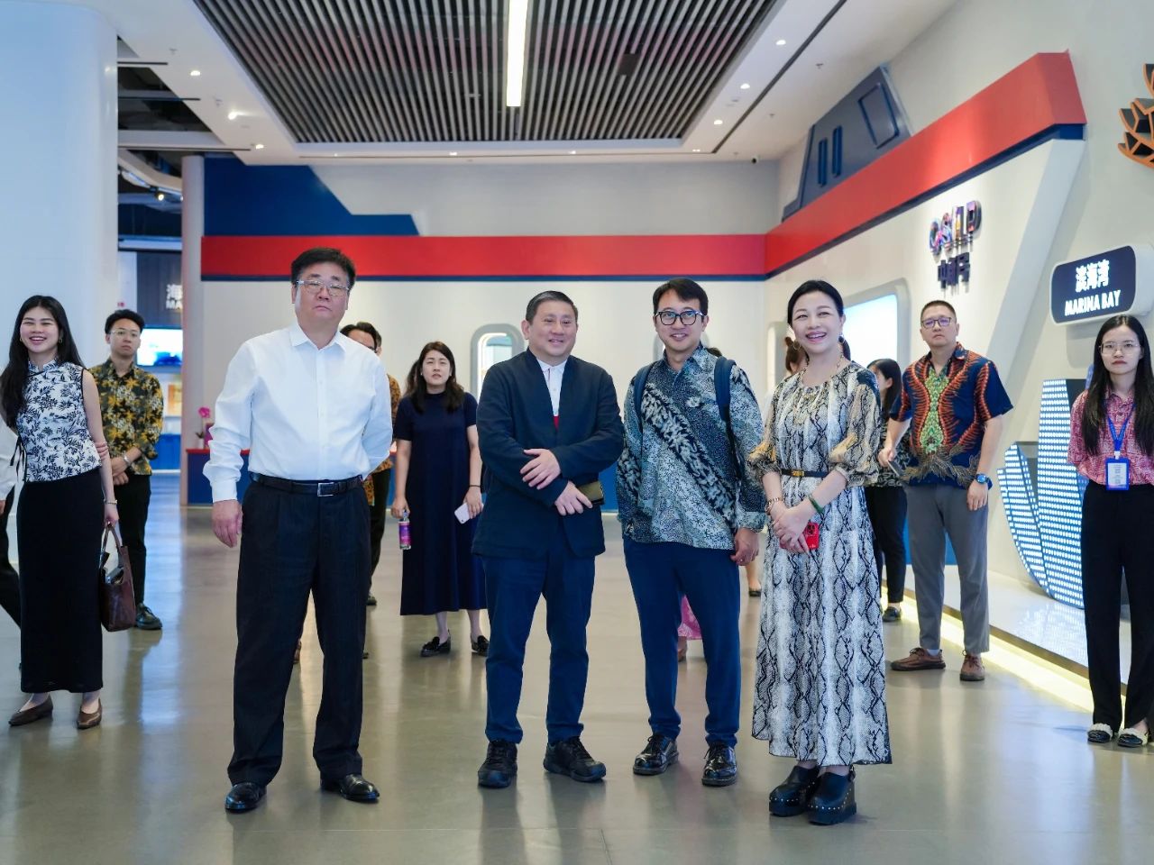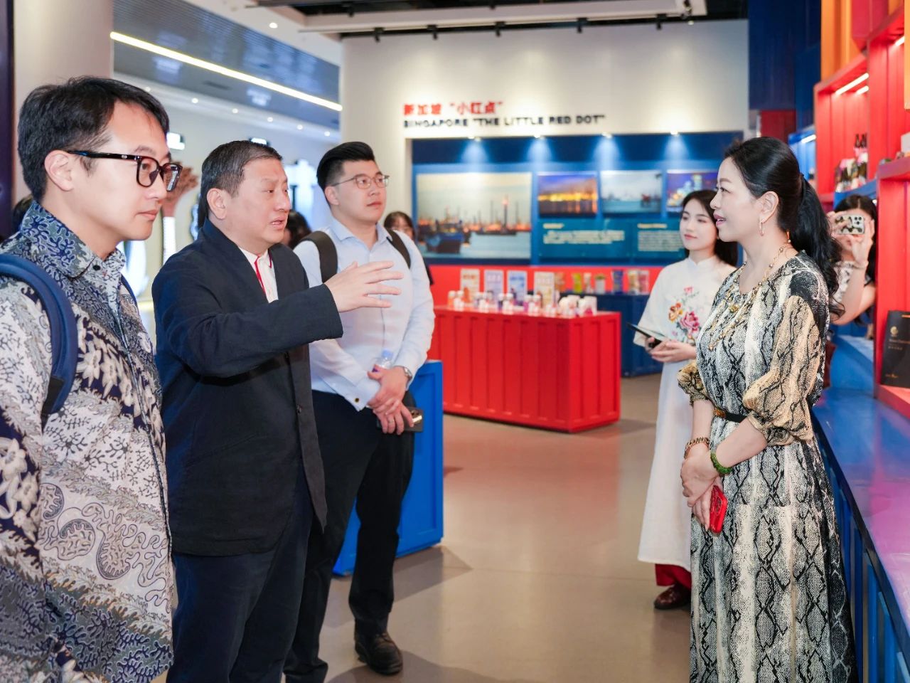 步入?yún)R聚中心,陳海泉大使便被新加坡展館門口的魚尾獅所吸引,特意駐足拍攝。進(jìn)入展館后,考察組沉浸式體驗了璀璨星空走廊、垂直綠化的花園城市與組屋街區(qū)等場景,紛紛表示很開心能在廣西看到一個多維度呈現(xiàn)“獅城”獨特風(fēng)貌的地方,漫步其中恍若回到新加坡,倍感親切。同時,考察組充分認(rèn)可了匯聚中心線上線下相結(jié)合的創(chuàng)新理念,并就未來在經(jīng)貿(mào)、物流等領(lǐng)域的合作與匯聚中心團(tuán)隊進(jìn)行了交流并達(dá)成共識。