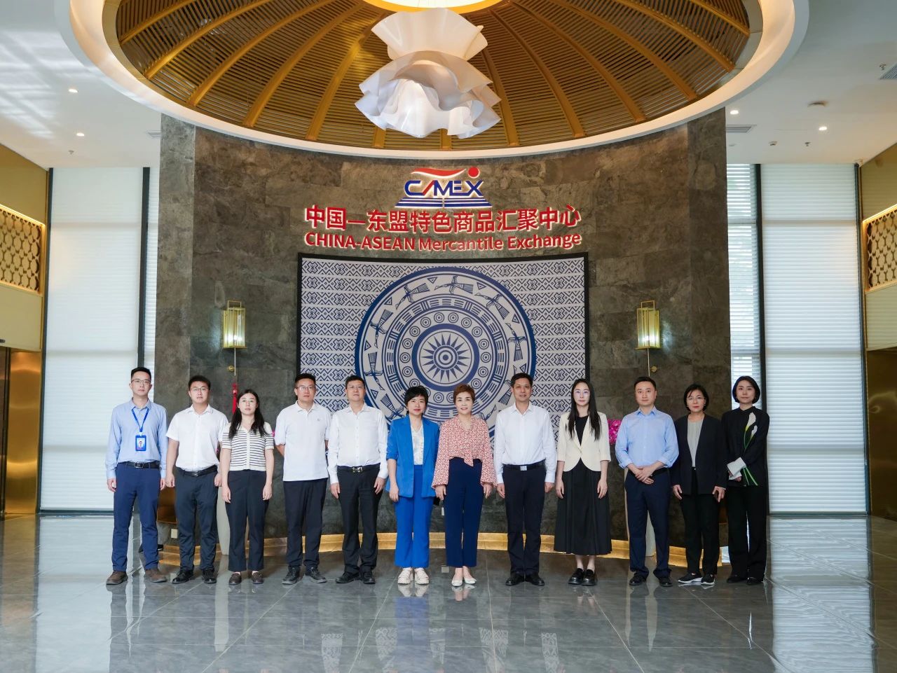 2025年4月16日,重慶市貿(mào)促會(huì)會(huì)長(zhǎng)鄧琳一行在廣西貿(mào)促會(huì)副會(huì)長(zhǎng)劉樹(shù)義的陪同下到中國(guó)—東盟特色商品匯聚中心(簡(jiǎn)稱(chēng)“匯聚中心”)參觀調(diào)研并進(jìn)行座談交流。中國(guó)—東盟特色商品匯聚中心副總經(jīng)理盧春梅熱情接待了調(diào)研組。