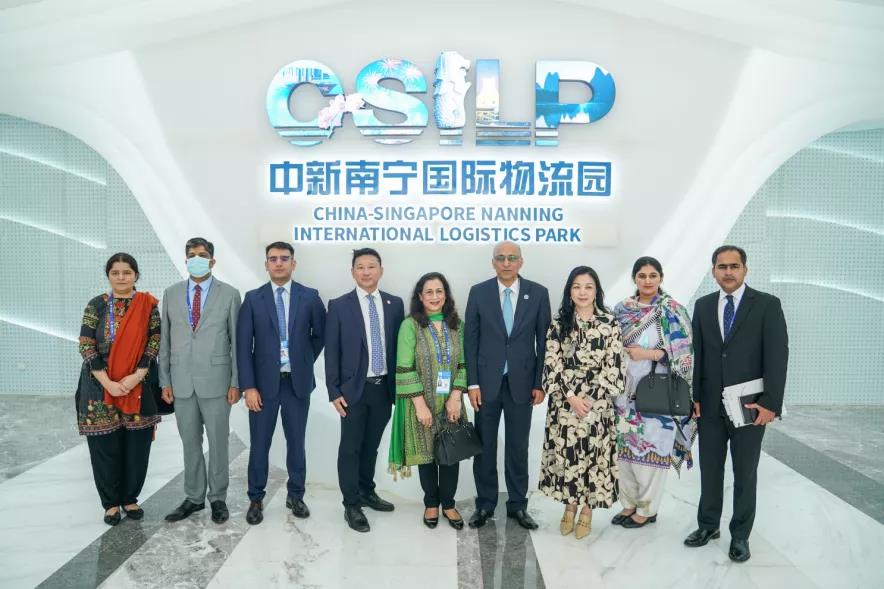 中國—東盟博覽會秘書處、自治區(qū)發(fā)展改革委、自治區(qū)商務廳、自治區(qū)外事辦、自治區(qū)投資促進局以及南寧市領導、巴基斯坦代表團、廣西新中產(chǎn)業(yè)投資有限公司有關人員參加此次揭牌儀式活動。