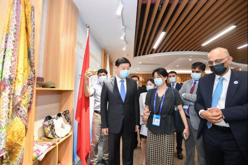揭牌儀式結(jié)束后,王小東、莫因·哈克等還參觀了巴基斯坦商品展示區(qū)。此次入駐中國—東盟特色商品匯聚中心,巴基斯坦重點展出紡織品、食品、木制品以及外科手術產(chǎn)品和運動產(chǎn)品等主要出口產(chǎn)品。