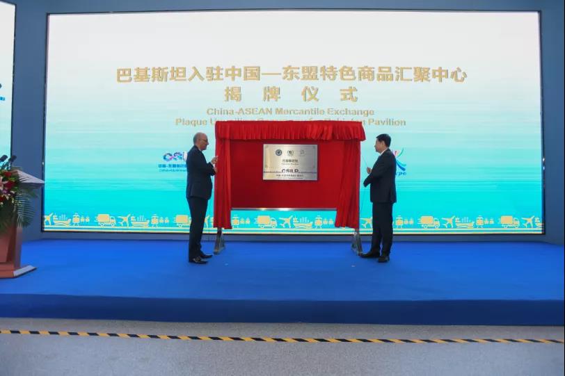 在第18屆中國—東盟博覽會盛大開幕之際,9月9日,巴基斯坦入駐中國—東盟特色商品匯聚中心揭牌儀式在廣西南寧中新南寧國際物流園舉行,廣西壯族自治區(qū)黨委常委、南寧市委書記王小東,巴基斯坦駐華大使莫因·哈克等共同出席揭牌儀式并致辭,對巴基斯坦在廣西南寧設置展示館表示祝賀。
