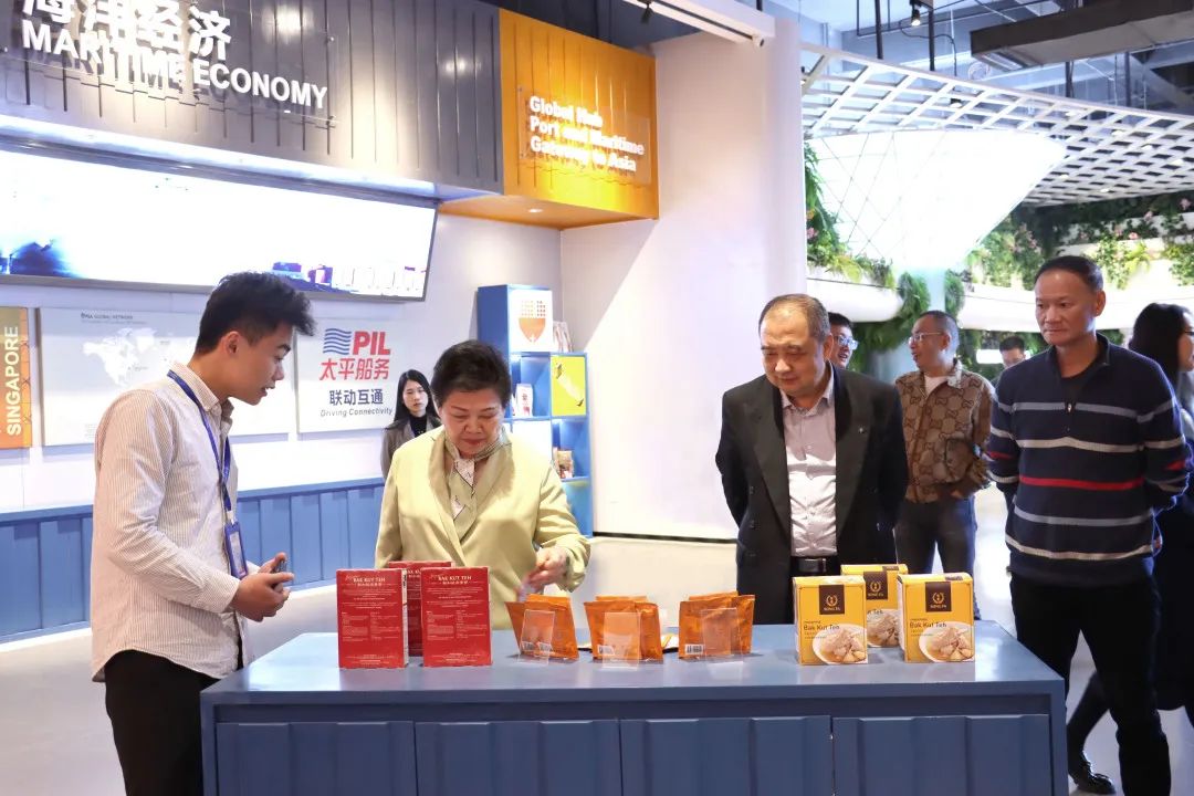 位于園區(qū)內(nèi)的中國(guó)—東盟特色商品匯聚中心,是中新南寧國(guó)際物流園與中國(guó)—東盟博覽會(huì)秘書(shū)處聯(lián)合重點(diǎn)打造的項(xiàng)目,致力于搭建中國(guó)與東盟、RCEP其他區(qū)域國(guó)家乃至“一帶一路”沿線(xiàn)重要國(guó)家經(jīng)貿(mào)往來(lái)線(xiàn)上線(xiàn)下一站式首選平臺(tái)。在參觀匯聚中心的過(guò)程中,考察團(tuán)聽(tīng)取了展館的設(shè)計(jì)理念,對(duì)館內(nèi)琳瑯滿(mǎn)目的特色商品表現(xiàn)出濃厚的興趣。認(rèn)為匯聚中心線(xiàn)下展館不僅設(shè)計(jì)別出心裁,而且能夠通過(guò)線(xiàn)上平臺(tái)一站式購(gòu)買(mǎi)各式東盟乃至RCEP其他區(qū)域國(guó)家的特色商品,比如新加坡的肉骨茶、泰國(guó)的醬料、澳大利亞的紅酒等,對(duì)商家及消費(fèi)者來(lái)說(shuō)將是一種全新的沉浸式商貿(mào)體驗(yàn),同時(shí)匯聚中心提供的商品免費(fèi)展示空間,能夠降低入駐商家的運(yùn)營(yíng)成本,為企業(yè)提供了良好的服務(wù)平臺(tái)。