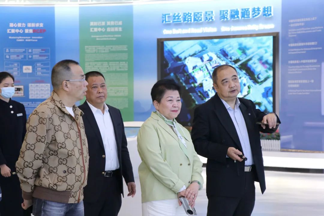 廣西壯族自治區(qū)黨委統(tǒng)戰(zhàn)部一級(jí)調(diào)研員、廣西僑商會(huì)常務(wù)副會(huì)長(zhǎng)楊真標(biāo),廣西僑商會(huì)常務(wù)副會(huì)長(zhǎng)、輪值會(huì)長(zhǎng)、廣西桂林萬(wàn)靈置業(yè)投資有限公司執(zhí)行董事黃江玲,廣西僑商會(huì)常務(wù)副會(huì)長(zhǎng)、廣西粵玖實(shí)業(yè)有限公司董事長(zhǎng)鄺升,廣西僑商會(huì)監(jiān)事長(zhǎng)、廣西方凱酒店管理有限責(zé)任公司董事長(zhǎng)黃少紅,廣西僑商會(huì)秘書(shū)長(zhǎng)蔣文釗,怡海集團(tuán)辦公室主任薛淑良,怡海集團(tuán)投資部經(jīng)理崔宇赟,中國(guó)—東盟特色商品匯聚中心副總經(jīng)理盧春梅等陪同考察。