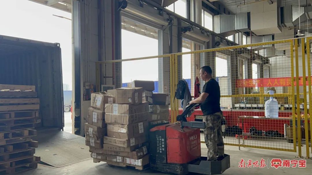 廣西綠港供應(yīng)鏈管理有限公司位于南寧綜合保稅區(qū),主要是開展跨境電商業(yè)務(wù)。該公司綜合管理部經(jīng)理龐冰綠介紹,綠港供應(yīng)鏈管理有限公司積極協(xié)同南寧郵局海關(guān)進(jìn)行業(yè)務(wù)創(chuàng)新,于今年4月份實現(xiàn)了綜保區(qū)與空港區(qū)港聯(lián)動“無感式”轉(zhuǎn)關(guān)模式,貨物抵達(dá)口岸實現(xiàn)電子關(guān)鎖自動解鎖,并自動核銷轉(zhuǎn)關(guān)數(shù)據(jù),在非海關(guān)作業(yè)時間也能正常入倉進(jìn)行貨物裝上飛機(jī)前的準(zhǔn)備工作,有效保障了跨境電商貨物與航班對接的穩(wěn)定性,大幅度提升了貨物運(yùn)輸?shù)臅r效。從今年3月10日開展業(yè)務(wù)至7月,綠港跨境電商監(jiān)管中心累計為園區(qū)跨境電商企業(yè)服務(wù)出口跨境電商單量達(dá)2600萬票,貿(mào)易額約18.9億元人民幣,日均7個貨運(yùn)柜。