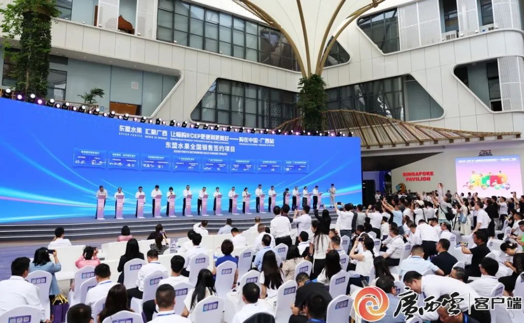 此次活動(dòng)圍繞“東盟水果及RCEP優(yōu)品·溯源之旅、匯聚廣西、通達(dá)中華、全民共享”4個(gè)篇章進(jìn)行,越南駐華大使范清平、文萊駐華大使拉赫瑪尼、柬埔寨駐南寧總領(lǐng)事唐肅安、印度尼西亞駐廣州總領(lǐng)事斌德加、老撾駐南寧總領(lǐng)事翁巴努·西巴色、馬來(lái)西亞駐南寧總領(lǐng)事法蒂爾·伊斯邁爾、緬甸駐南寧總領(lǐng)事凱素林、菲律賓駐廣州總領(lǐng)事艾瑞現(xiàn)場(chǎng)或通過(guò)視頻進(jìn)行推介;與輝同行(北京)科技有限公司負(fù)責(zé)人董宇輝進(jìn)行了分享并受聘為本次活動(dòng)直播電商合作伙伴,人民網(wǎng)董事長(zhǎng)、傳播內(nèi)容認(rèn)知全國(guó)重點(diǎn)實(shí)驗(yàn)室主任葉蓁蓁發(fā)布中國(guó)(廣西)—東盟水果大模型;南寧、欽州、崇左市,自治區(qū)商務(wù)廳、文化和旅游廳,中國(guó)食品土畜進(jìn)出口商會(huì)和國(guó)內(nèi)電商平臺(tái)、跨境電商企業(yè)代表分別進(jìn)行了推介;一批東盟水果采購(gòu)項(xiàng)目、RCEP優(yōu)品落地加工項(xiàng)目、東盟水果全國(guó)銷售項(xiàng)目進(jìn)行簽約,發(fā)布構(gòu)建中國(guó)—東盟人工智能合作生態(tài)圈倡議。